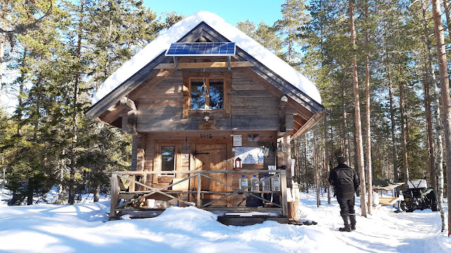 Lähdin kävelemään kovaksi tampattua leveää polkua. Polun suuntaan osoitti viitta, jossa luki "Tupa 0,5 km". Satunnaisia liukkaita kohtia lukuunottamatta polulla oli helppoa kävellä tavallisilla vaelluskengillä. Hieman erilainen kokemus siis, kuin vajaan kolmen vuoden takainen epätoivoinen rämpiminen